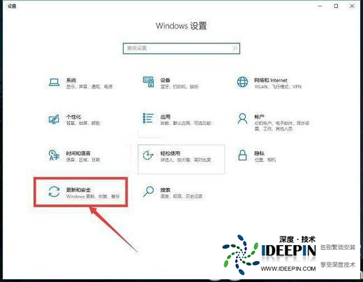 2、进入到windows的设置界面,然后点击“更新和安全”。